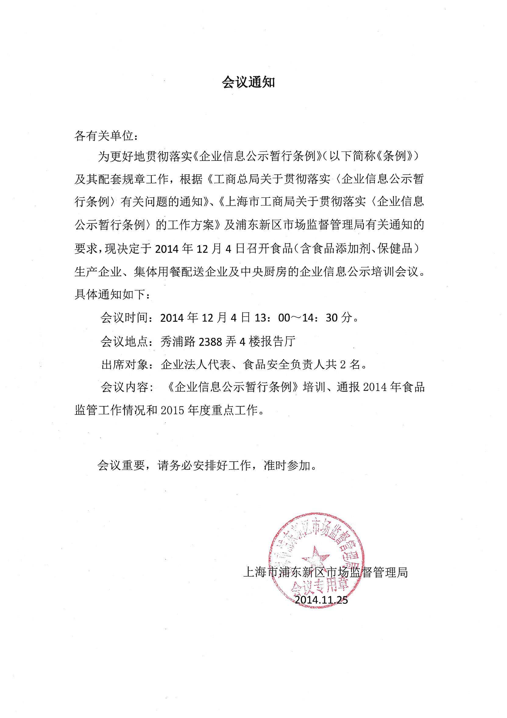会议通知:《企业信息公示暂行条例》培训12月4日13:00~14:30