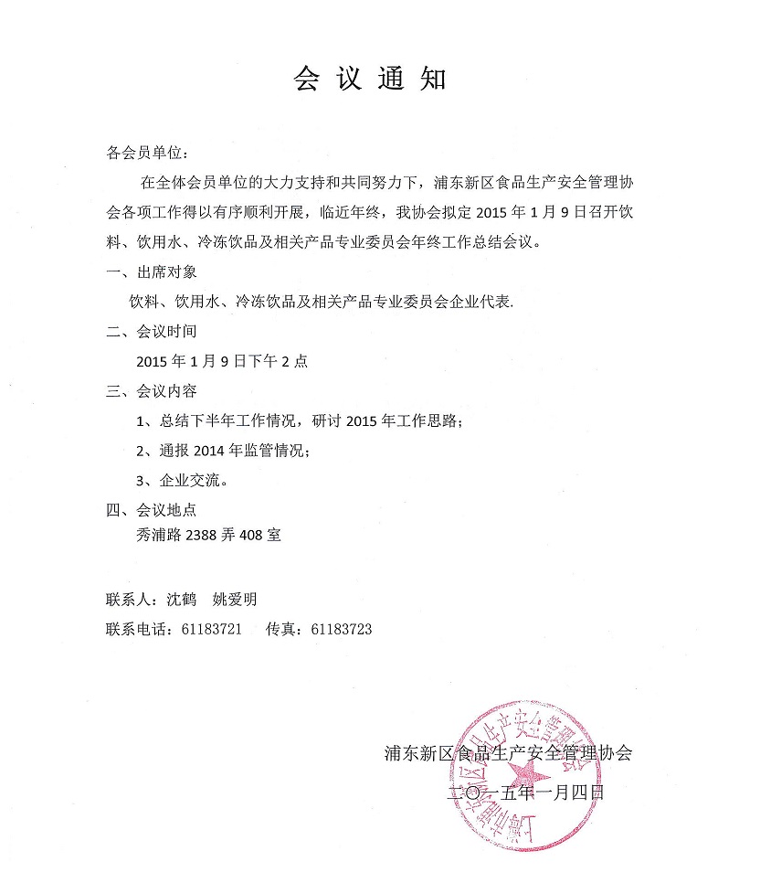 会议通知:召开专业委员会年终工作总结会议(2015年01月09日)
