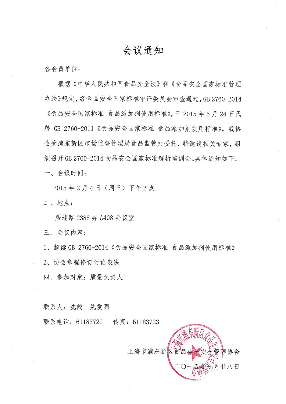 GB 2760-2014《食品安全国家标准 食品添加剂使用标准》培训会议