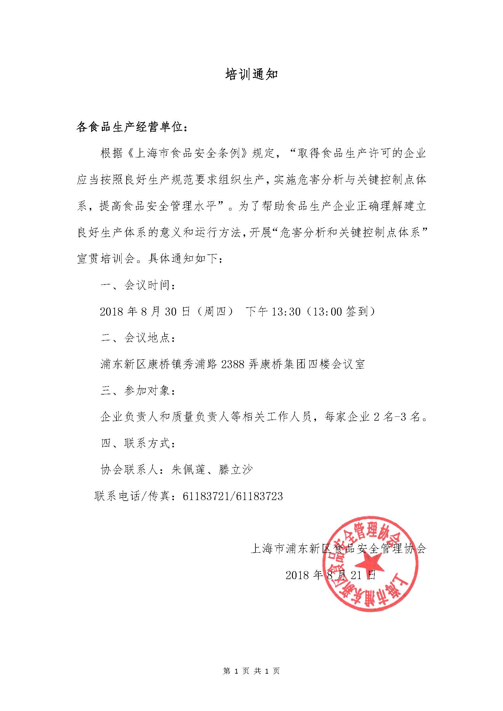 危害分析和关键控制点(HACCP)体系宣贯活动的通知