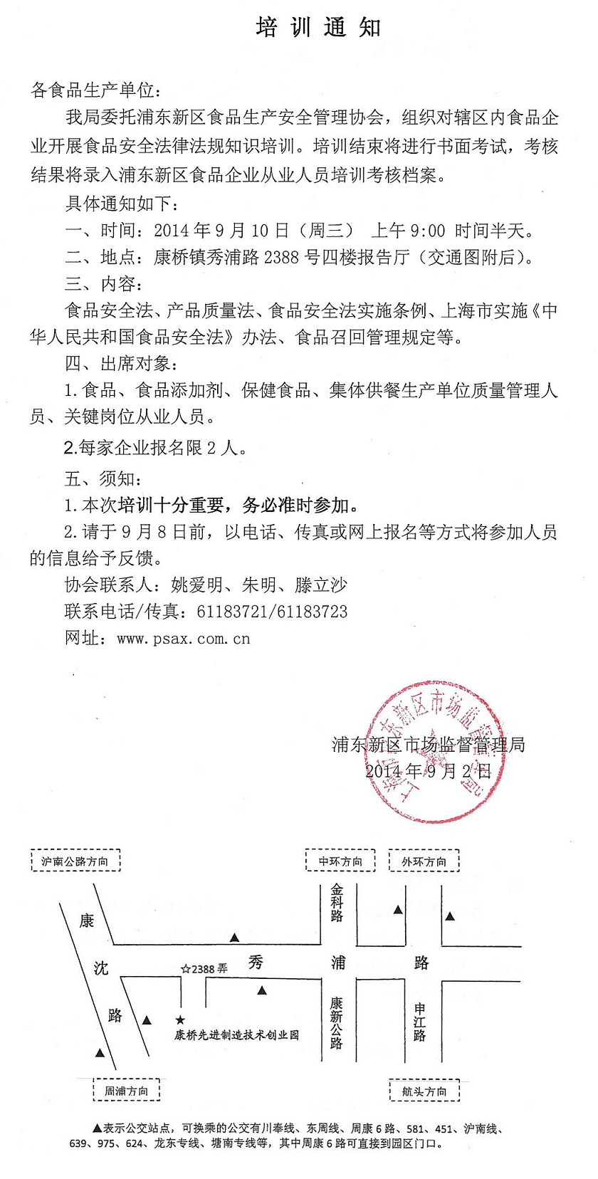 培训通知:食品安全法律法规和专业知识培训(9月10日上午)