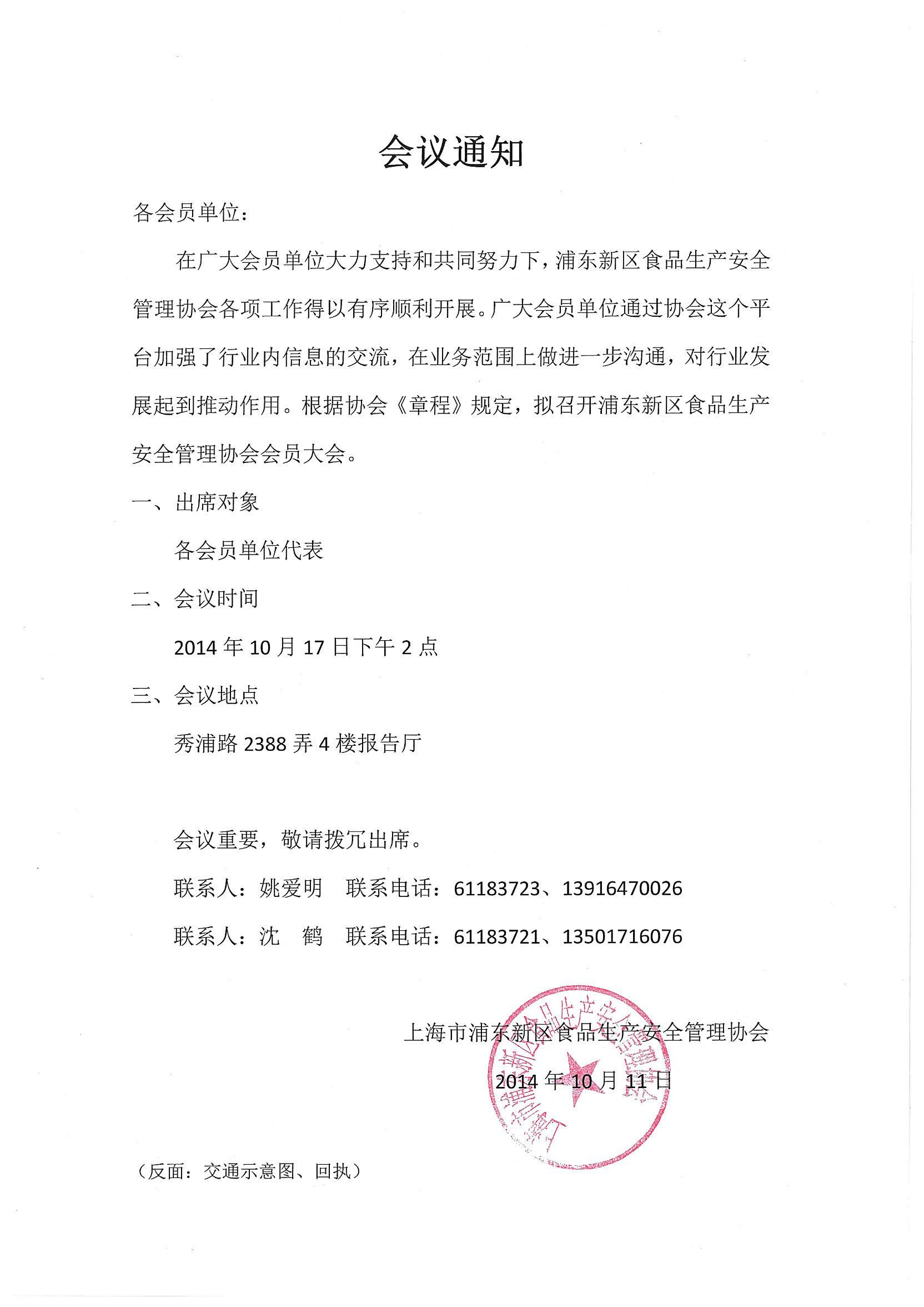 会议通知:浦东新区食品生产安全管理协会会员大会