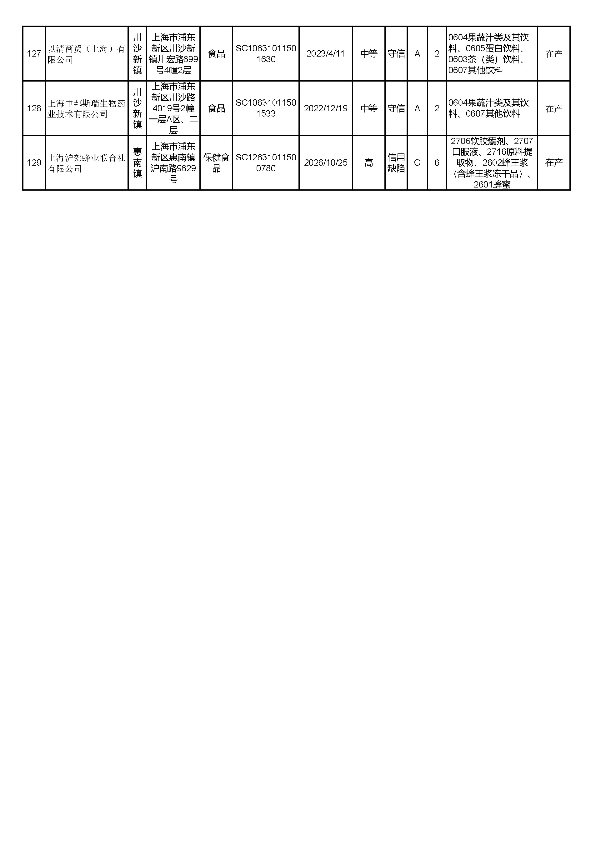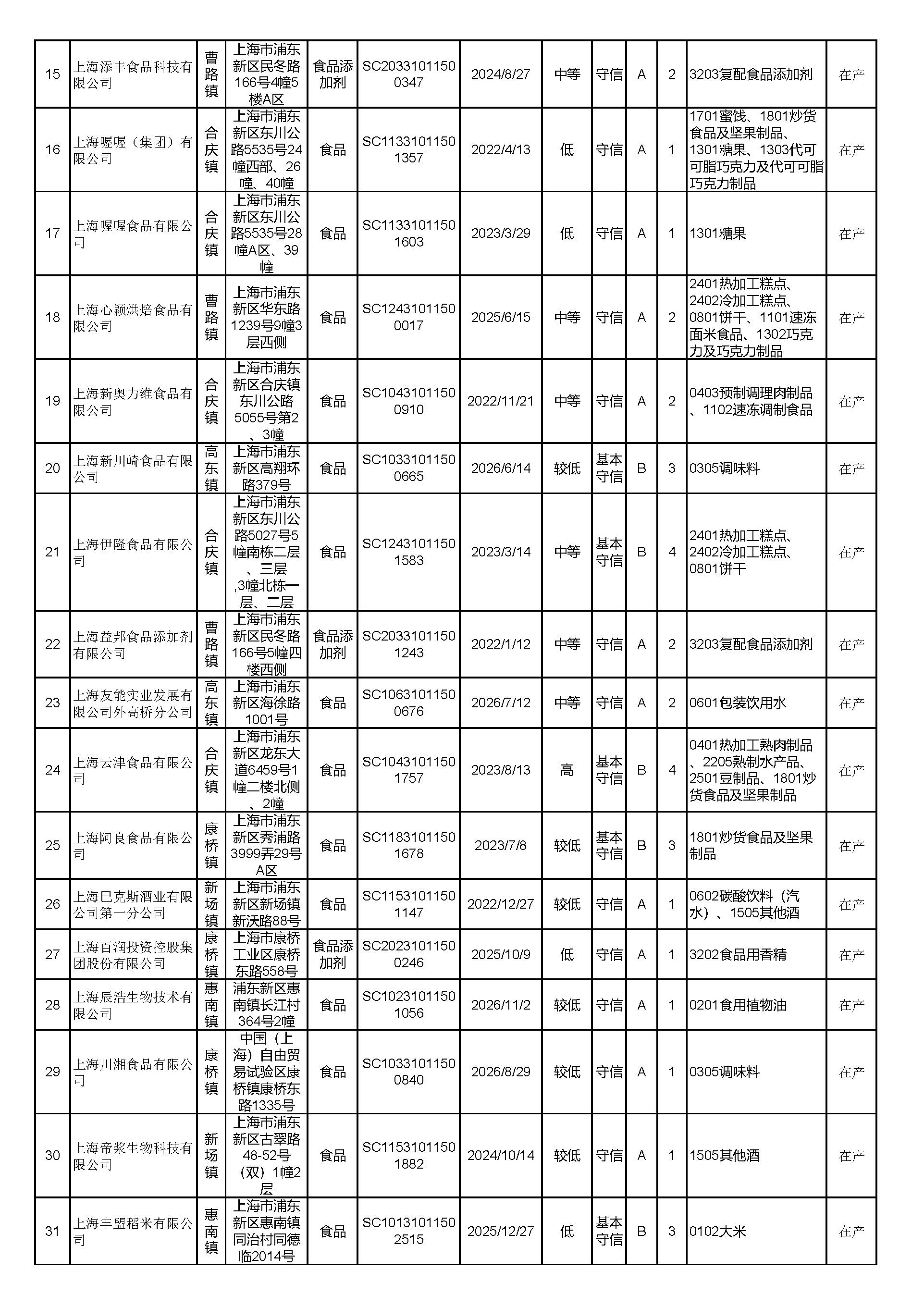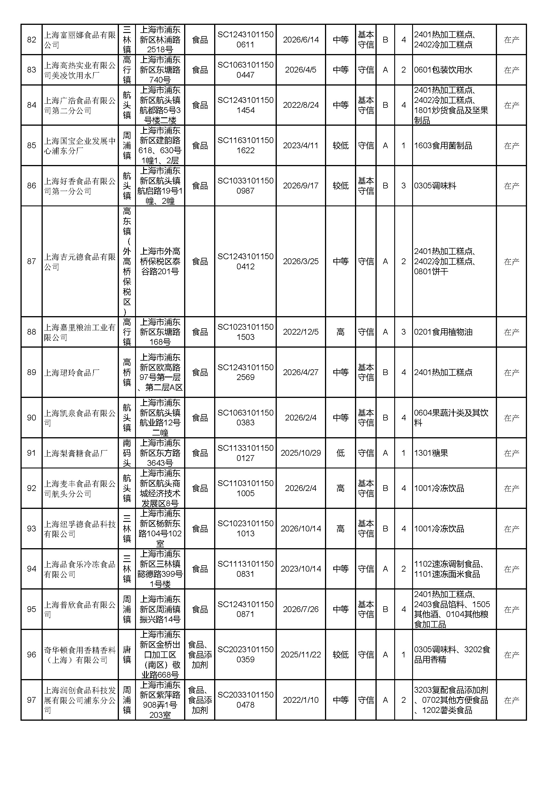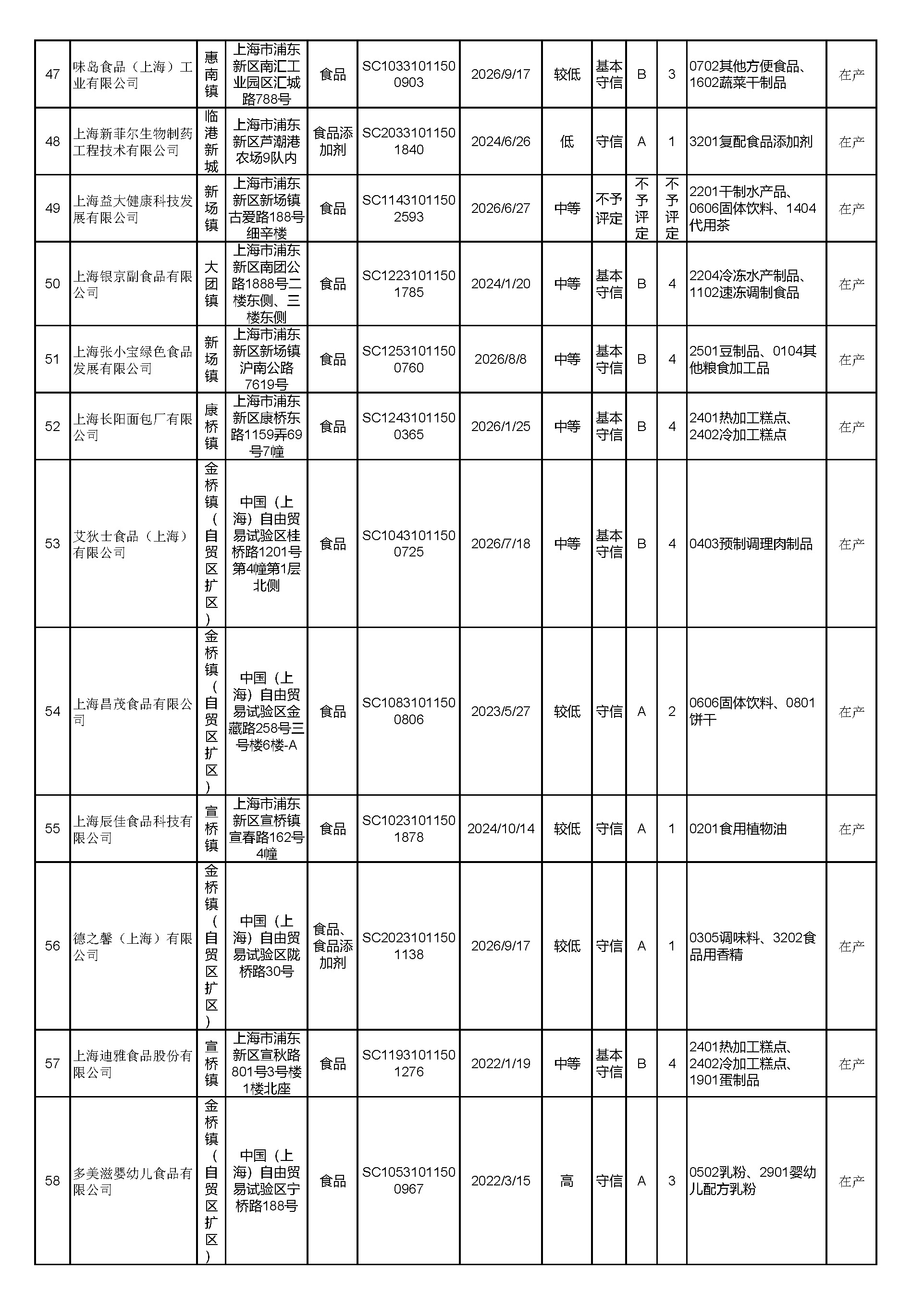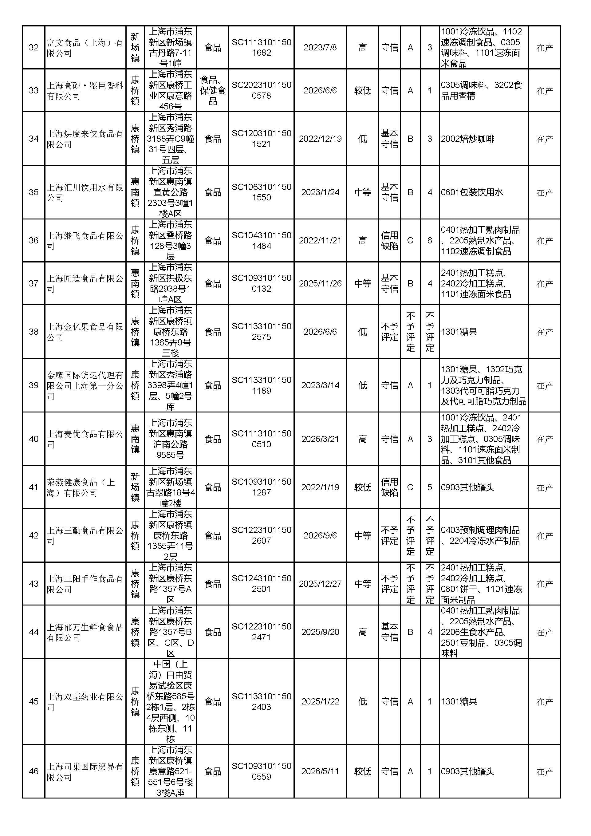 2022年浦东新区食品生产企业食品安全风险与信用分级初评情况
