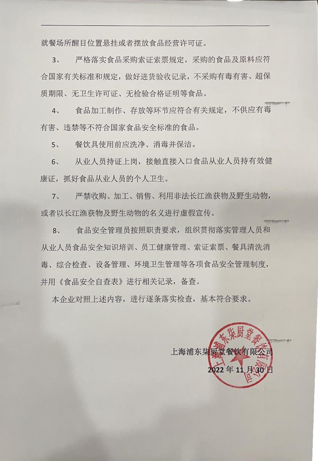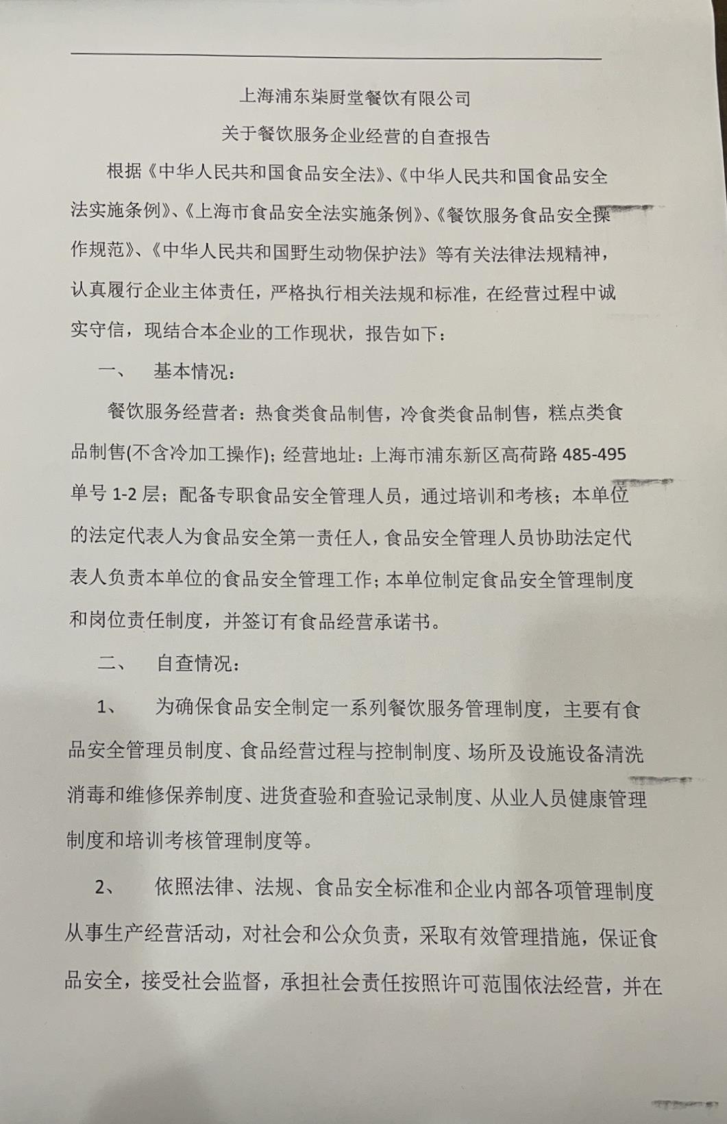 食品单位自查公示